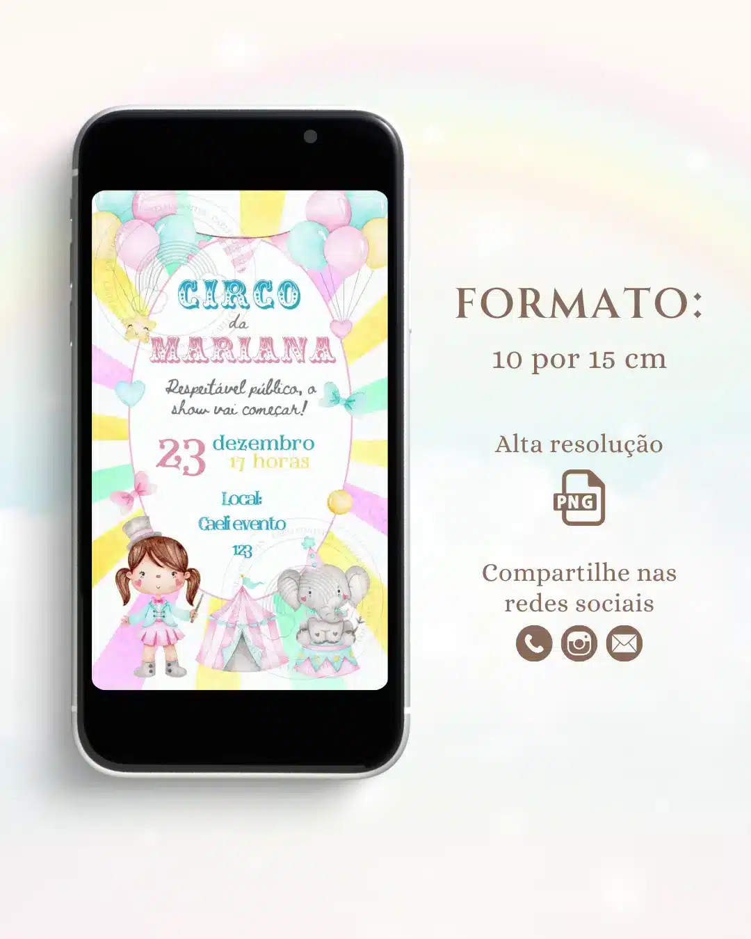 O convite personalizado será enviado para o seu WhatsApp ou e-mail informado na compra em até 2 dias úteis. Ele é exclusivamente digital e por isso não possui frete para entrega.