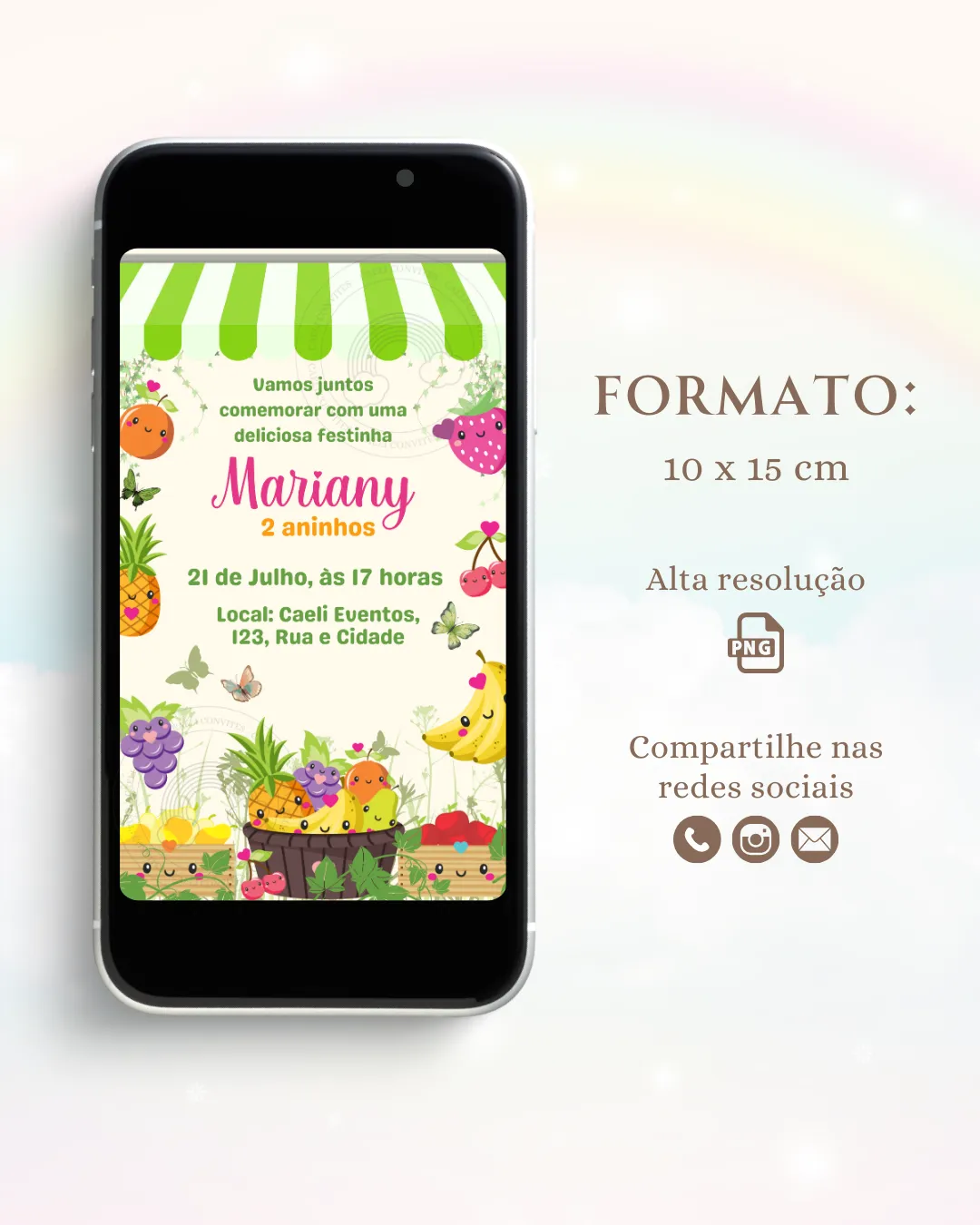 Convite Digital Quitandinha Frutaria,convite quitandinha,convite tema quitandinha