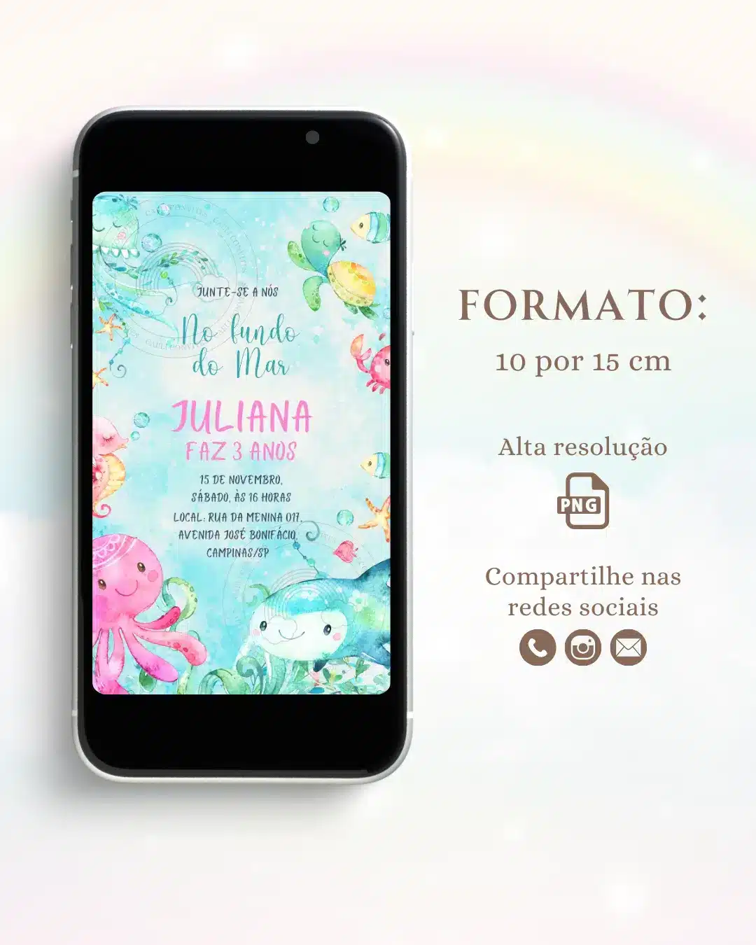 Seja o primeiro a avaliar “Convite Digital Fundo do Mar Menina 1”
