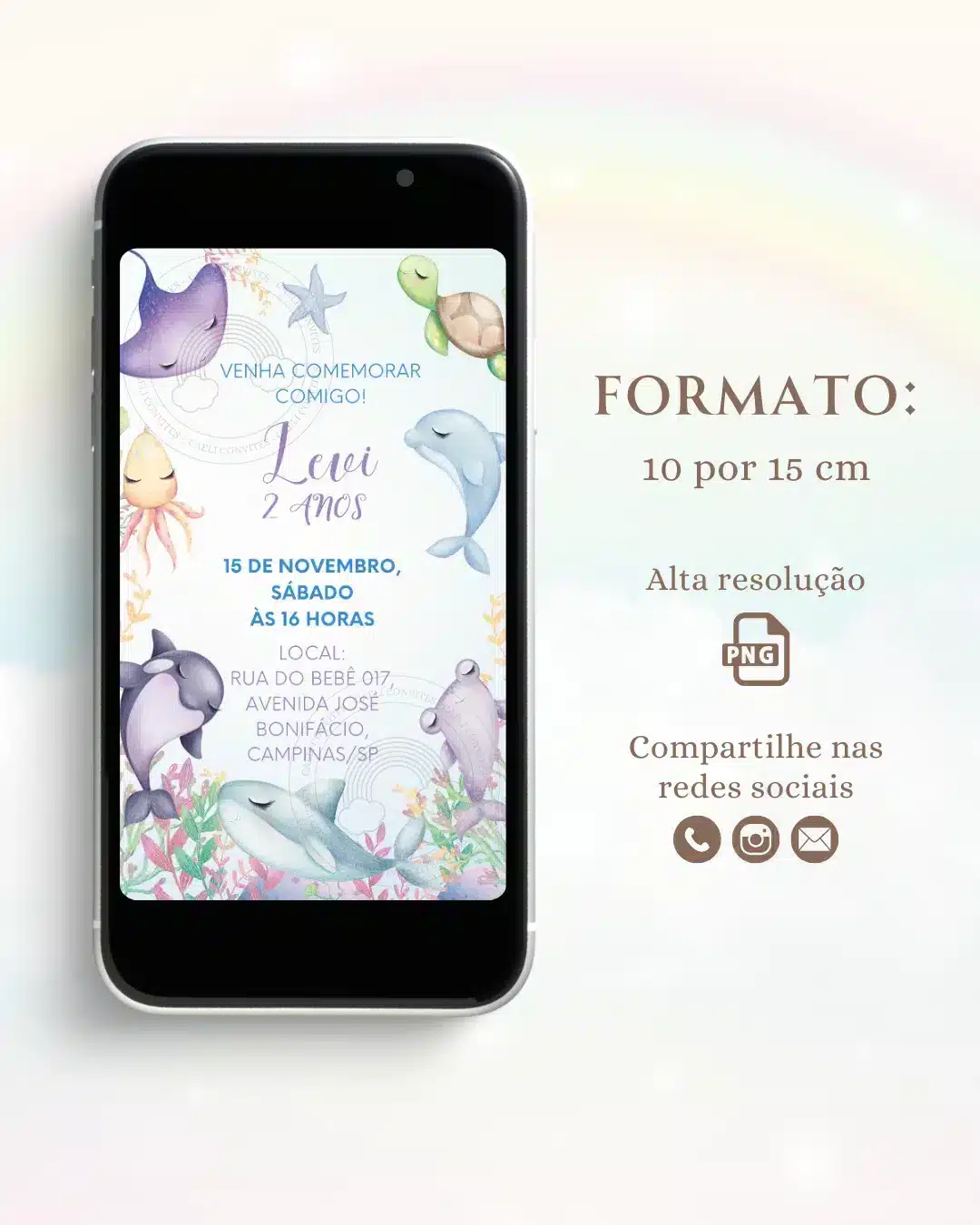 O convite personalizado será enviado para o seu WhatsApp ou e-mail informado na compra em até 2 dias úteis. Ele é exclusivamente digital e por isso não possui frete para entrega.