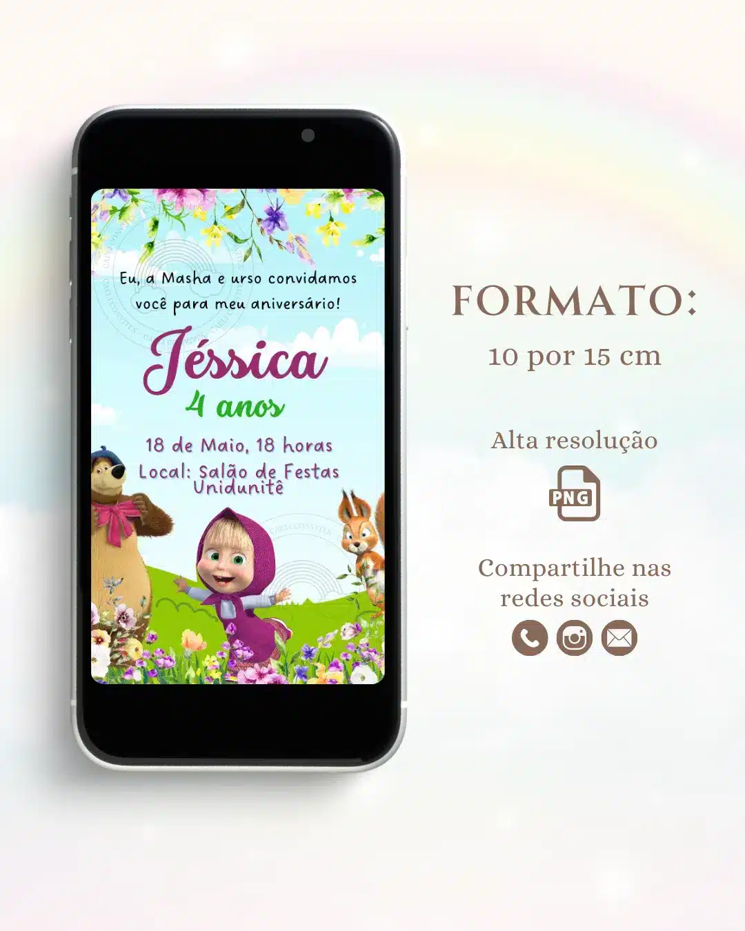 Você receberá um arquivo digital no formato PNG nas dimensões de 10×15 cm, personalizado de acordo com o modelo escolhido.