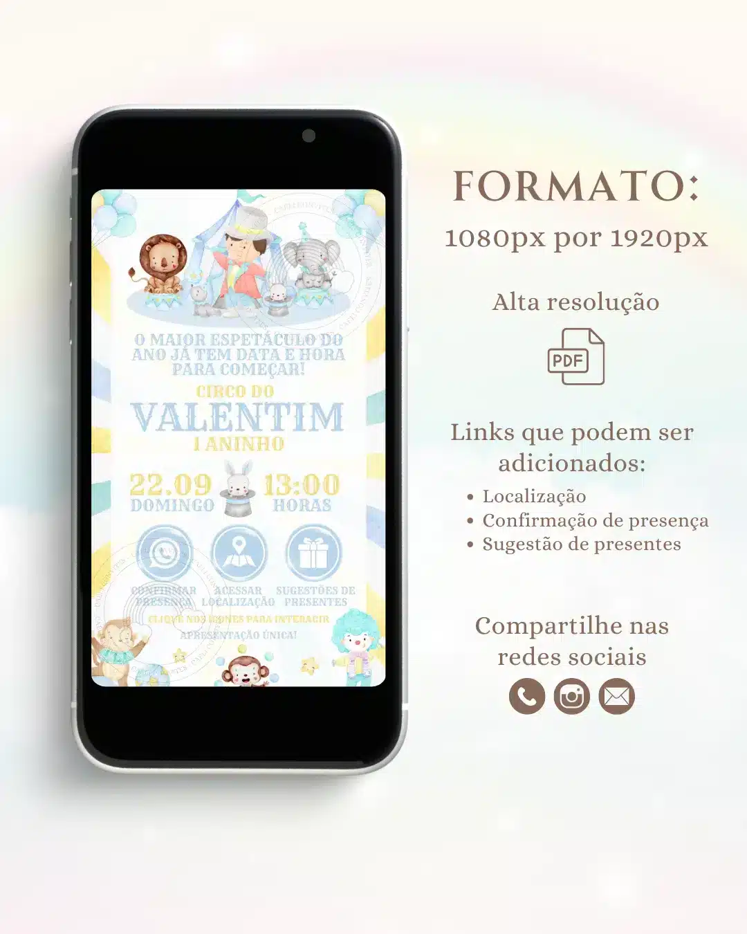 Após a compra e confirmação do pagamento entraremos em contato pelo WhatsApp cadastrado para que você possa enviar as informações e dados necessários para confecção do convite.