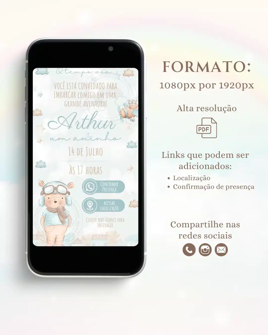 Após a compra e confirmação do pagamento entraremos em contato pelo WhatsApp cadastrado para que você possa enviar as informações e dados necessários para confecção do convite.